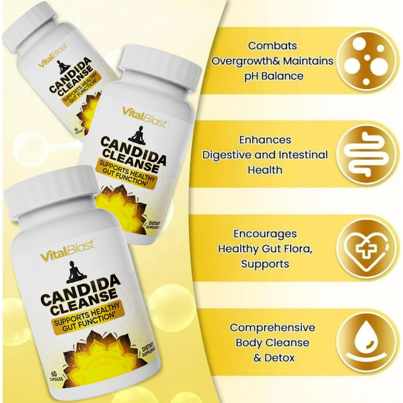 Cándida Limpieza de VitalBlast apoya el equilibrio digestivo y microbiano para ayudar a recuperar estabilidad y energía diaria.