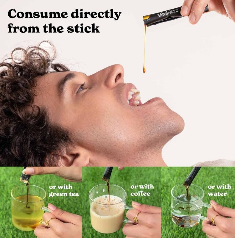 VitalBlast Himalayan Shilajit Honey Sticks apoyan energía, testosterona y rendimiento desde adentro.